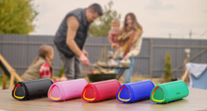 [Tough & Weather-Resistant] Engineered to handle rough use and adverse weather conditions, this speaker features a durable design and an IPX5 rating for protection against water splashes and spills. It’s an ideal choice for outdoor events, and is perfect for use at parties, at the pool, on the beach, while camping or hiking, and more